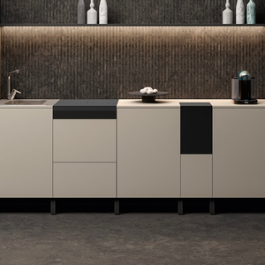 Binario er en italiensk møbelkolleksjon med et essensielt bilde og rene linjer, som er stilen til AntonioLupi. Et viktig grafisk tegn som blir til en geometrisk dekorasjon for å forbedre materialiteten på overflatene og øke volumet på beholderne. Parallelle linjer som skinner graverer frontene og sidene, gir overflaten tredimensjonalitet og kler møbelet med en "plissering" som visuelt gjør det lettere. Med en avstand på 3 mm i Binario 03 og 12 mm i Binario 12 artikulerer fresingene den langsgående utviklingen av møblene, mot en veldig tett vertikal spor som "måler" frontens proporsjon og beriker hele prosjektet. Binario 12 er tilgjengelig både i treversjon og i lakkert versjon med matt eller preget finish. Binario 03 er tilgjengelig i treversjon, silke eller preget lakkert versjon i alle farger fra AntonioLupi-serien. Binario 12 er tilgjengelig både i treversjon og i lakkert versjon med matt, silke eller preget finish.